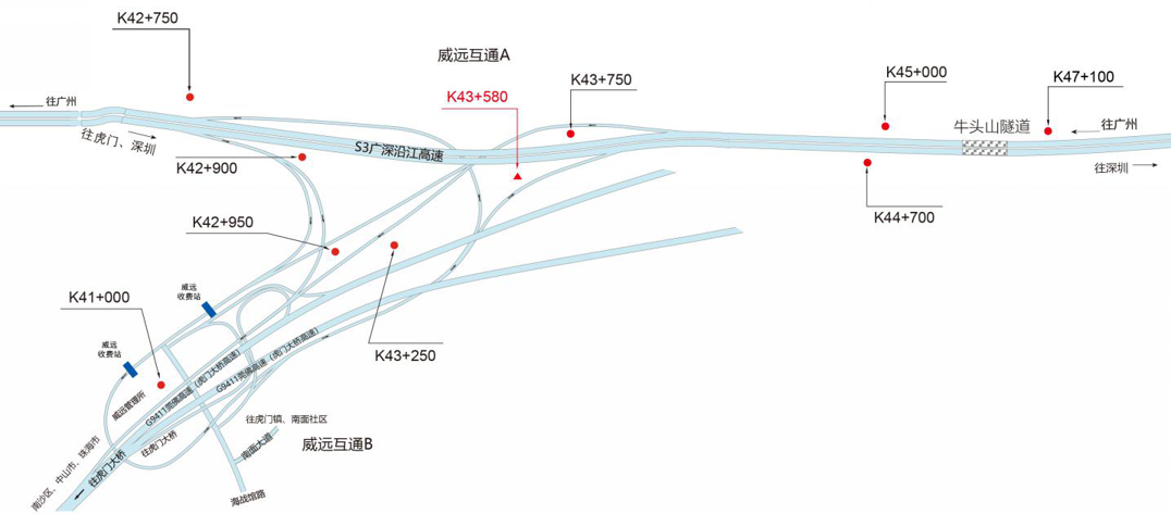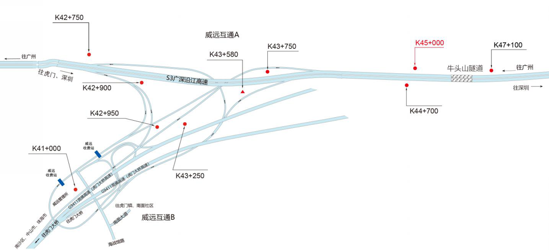 ????? 廣深沿江高速公路是連接廣州市至深圳市的城際高速公路(簡稱S3),是廣東省“十一五”規劃重點建設項目。其深圳段被譽為“深圳最美高速公路”道路經廣州、東莞、深圳三市,起點位于廣州黃埔G107國道,終于深圳深港西部通道。是繼廣深高速公路之后,珠江三角洲地區又一條南北向重要的交通要道。