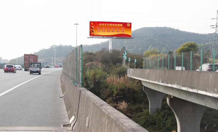 媒體編號:K16+300-麻涌互通(深圳方向) 媒體類型:噴繪+射燈,夜間照明4小時/日 媒體規格:18m(W)*6m(H)*2面=216m2 人車流量:30萬輛/日 媒體報價:請咨詢第一戶外客服