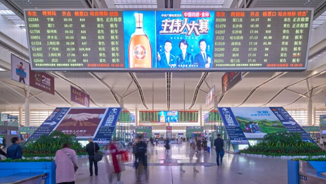 媒體位置:候車大廳中央主屏/北進站大廳LED屏