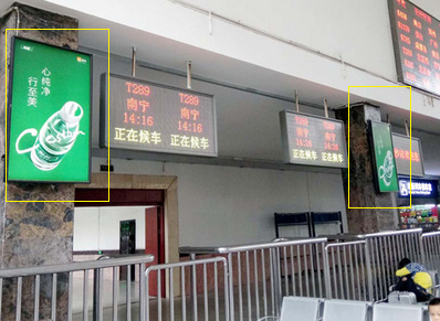 媒體位置:候車室壁掛刷屏 媒體尺寸:55英寸 媒體數量:14臺 播放頻次:190次/臺/天 媒體報價:1.48萬元/5秒/周,2.68萬元/10秒/周,3.68萬元/15秒/周 |