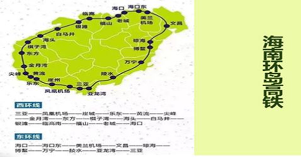 海南環(huán)島鐵路是中國海南省境內的高速鐵路,線路呈環(huán)形狀,為中國”八縱八橫“高速鐵路網包(銀)海通道的南端部分,也是沿海通道的組成部分。海南東環(huán)線運行區(qū)間為海口站至三亞站,途徑11個車站:海口,海口東、美蘭、文昌、瓊海、博鰲、萬寧、神州、陵水、亞龍灣、三亞,全長308.1公里, 每天開行近30對,年客流量2000萬人次。所配屬車型為CRH1A-A型,投入運營組數(shù)僅11組。