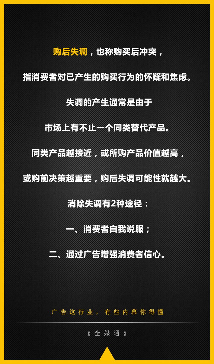 消除失調有2種途徑:一、消費者自我說服;二、通過廣告增強消費者信心。