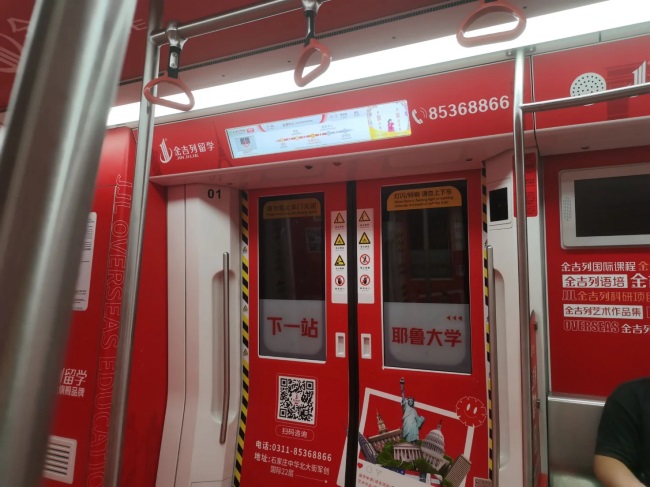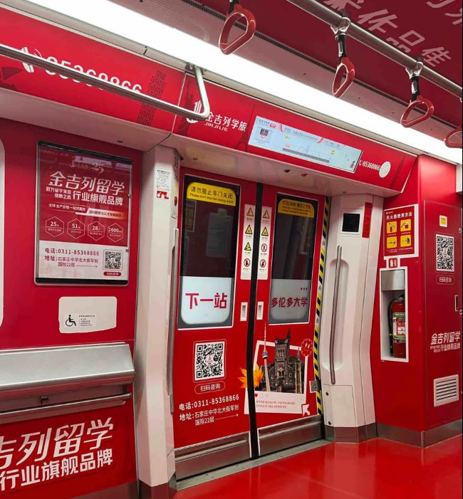 石家莊地鐵1號線全景內包車貼案例分享,石家莊地鐵車廂廣告價格