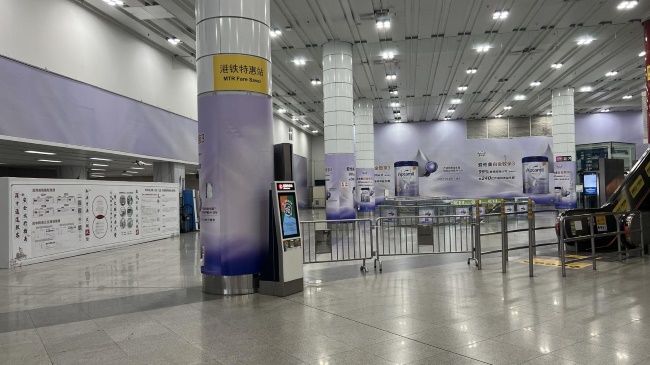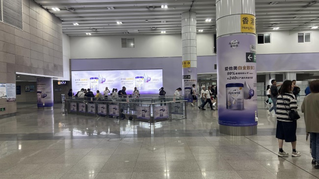 深圳地鐵4號線福田口岸站廳墻貼廣告投放案例,深圳地鐵廣告價格