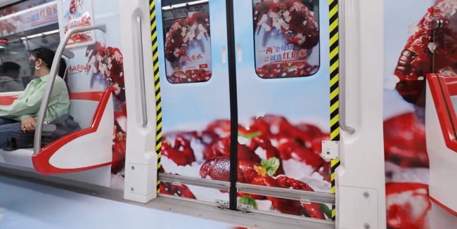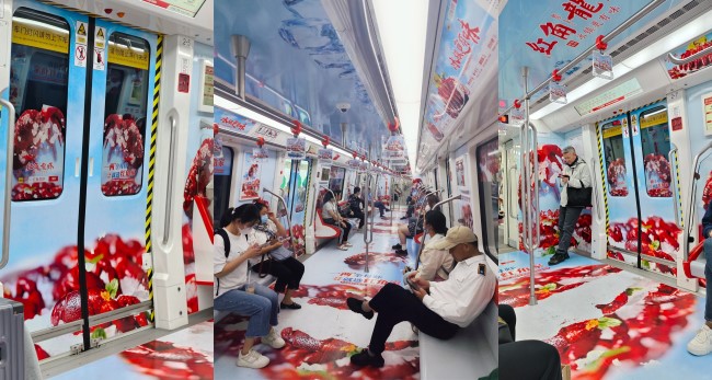 南通地鐵車廂創意全景內包車廣告餐飲案例,南通地鐵列車廣告價格