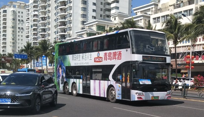 三亞公交車雙層巴士廣告價格,三亞雙層旅游觀光公交車身廣告投放