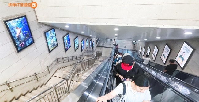 北京地鐵國貿站C出口超大扶梯燈箱品牌通道廣告
