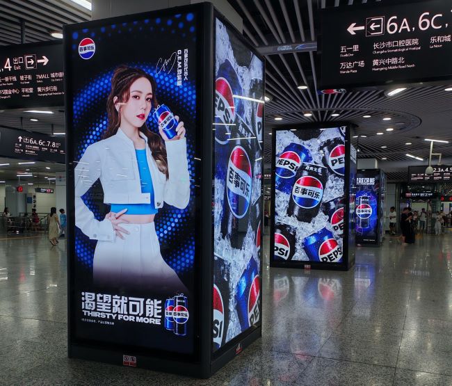 長(zhǎng)沙地五一廣場(chǎng)站品牌站廳中心包柱廣告