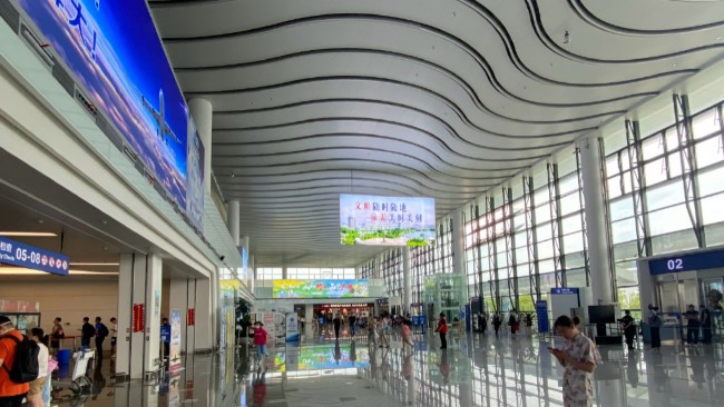 ?  出發大廳安檢口上方LED大屏:覆蓋全部出發旅客,動態展示效果好。