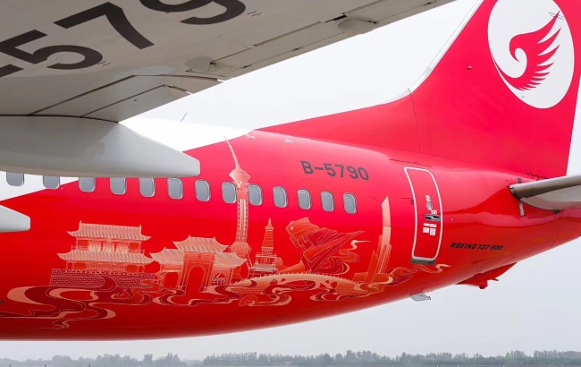 河北航空機身彩繪廣告投放,河北航空外機身貼膜廣告價格