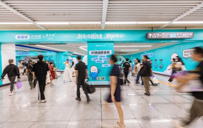 - 貴陽地鐵換乘站廳中央的品牌畫卷:噴水池站墻貼燈箱廣告2026-02-28