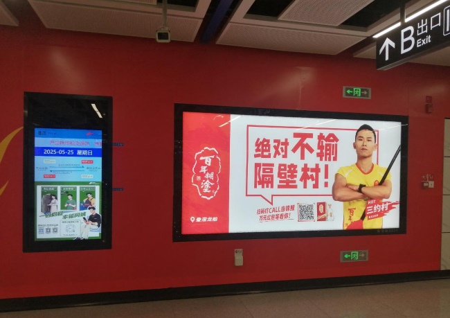 佛山地鐵3號線疊滘站站廳層燈箱墻貼廣告4.5㎡燈箱構(gòu)成連續(xù)視覺走廊,覆蓋閘機至站臺核心動線,形成品牌信息包圍網(wǎng);墻面貼附媒體無縫銜接乘客平視區(qū),與燈箱構(gòu)成立體視覺矩陣,回避率趨近于零封閉的地下空間迫使乘客主動凝視廣告,信息接收意愿較地面提升180%。通勤族進出站日均2次固定觸達,單次候車/換乘停留3-5分鐘。廣告通過站廳層墻貼和燈箱組合連續(xù)性視覺轟炸,實現(xiàn)單月60+次有效曝光,深度烙印品牌記憶。