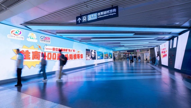 - 貴陽(yáng)地鐵換乘站廳中央的品牌畫(huà)卷:噴水池站墻貼燈箱廣告2026-02-28