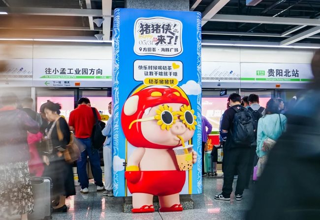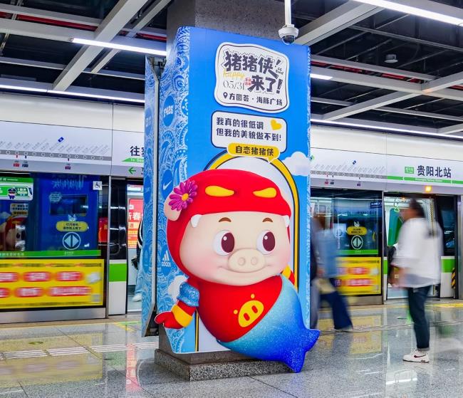 - 貴陽地鐵換乘站廳中央的品牌畫卷:噴水池站墻貼燈箱廣告2026-02-28