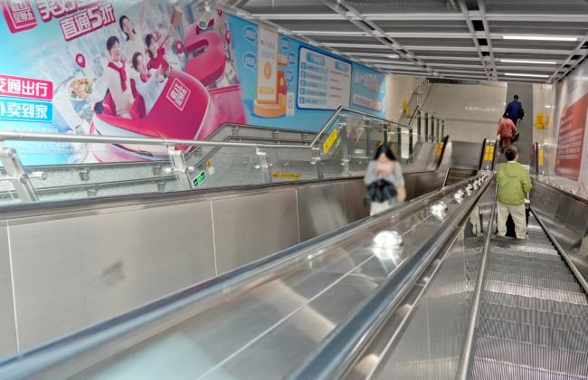 貴陽地鐵站出入口扶梯U型品牌入口廣告通過入口梯楣、兩側(cè)滿貼墻貼及梯牌的媒體組合,在出入口扶梯區(qū)域形成一個U型環(huán)繞的視覺空間。品牌信息能夠從多個角度進行傳遞,創(chuàng)造出沉浸式的品牌展示環(huán)境,視覺信息完整且沖擊力強。地鐵出入口恰好位于乘客行程開始與結(jié)束的關(guān)鍵節(jié)點。乘客在乘坐扶梯時,處于緩慢移動且視線方向相對穩(wěn)定的狀態(tài),為廣告內(nèi)容提供了充分的視覺接觸時間,確保了信息的有效觸達。