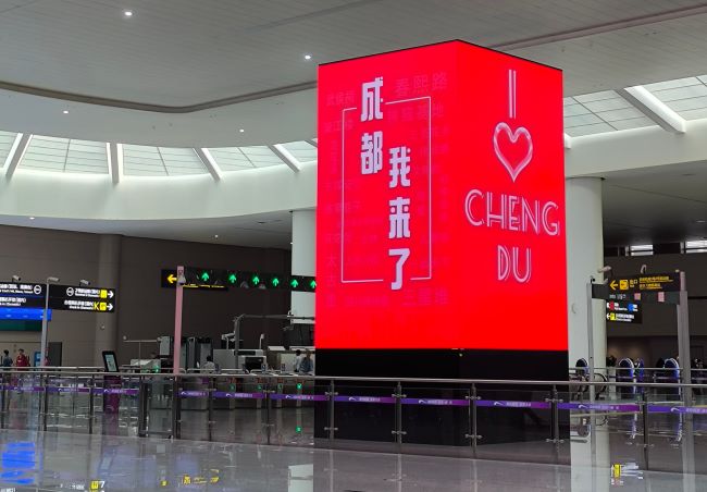 成都地鐵天府機場站廳層四面立柱LED大屏廣告