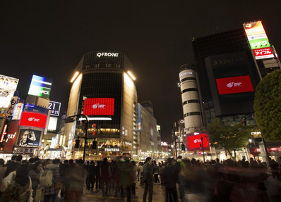媒體位置:東京澀谷路交叉口屏幕 亮屏時間:9:00 - 24:00(15小時/天) 媒體數量:5塊(4動態+1靜態) 媒體報價:54萬元/周(15秒,60次/天) |