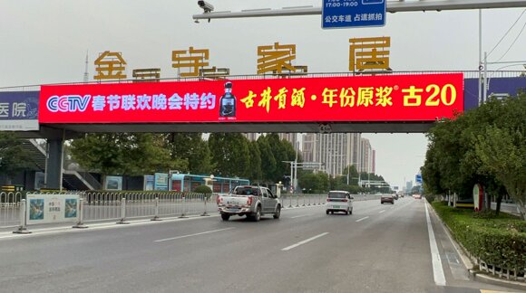 ?????? 跨橋位于濟寧市城區主干道金宇路億豐時代廣場門口。此路段是城區貫穿東西方向的主要通道,人流量及車流量大,地理位置優勢突出。LED屏橫跨金宇路,兩側道路寬闊、無任何遮 擋、視野清晰、全彩LED屏清晰度高,色彩艷麗、畫面雙面循環發布、展示面積大、效果震撼,極具廣告投放價值。