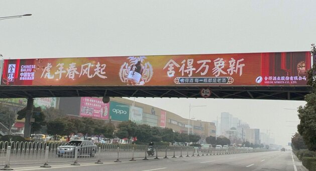 ??????? 跨橋位于濟寧城市主干道金宇路濟寧市職業技 術學院門口。此路段是貫穿東西方向的主要通道,人流量及車流量大,地理位置優勢突出。LED屏橫跨金宇路,兩側道路寬闊、無任何遮擋、視野清晰、全彩LED屏清晰度高色彩艷麗,畫面雙面發布、展示面積大、效果震撼,極具廣告投放價值。