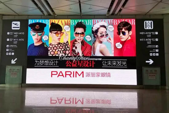 這家康輝精益眼鏡,為宣傳公司新推出的派麗蒙這款太陽眼鏡,不僅投放了全國幾大城市的機場廣告,還邀請鄭愷、陳偉霆、張翰、吳莫愁,迪麗熱巴五位新世代偶像,傾力打造明星設計款,滿載著設計者對藝術、夢想和未來的期待。下面我們就來看一看,他們的機場廣告上畫后的效果吧!