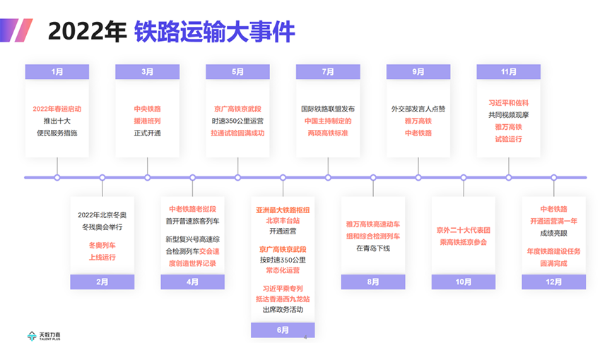 作為交通運(yùn)輸大動(dòng)脈,鐵路在保障能源安全 / 保障糧食安全 / 保障民生供給等方面發(fā)揮重要作用,服務(wù)經(jīng)濟(jì)社會(huì)發(fā)展大局,為國民經(jīng)濟(jì)平穩(wěn)運(yùn)行提供有力支撐。