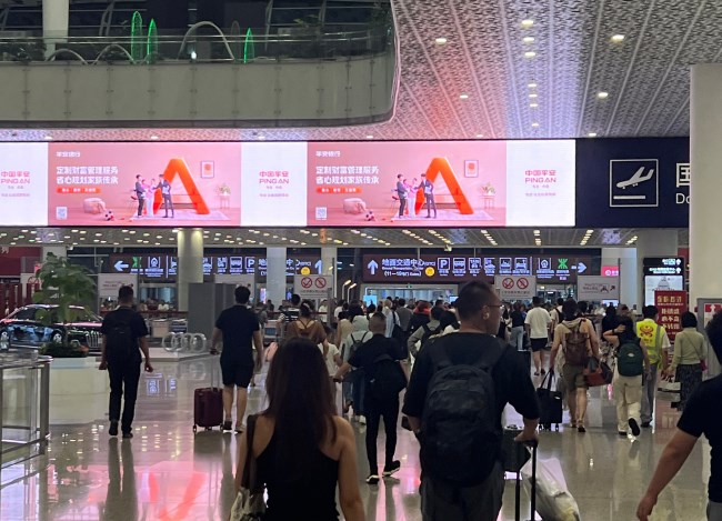 深圳機場國內到達大廳出口上方LED大屏廣告