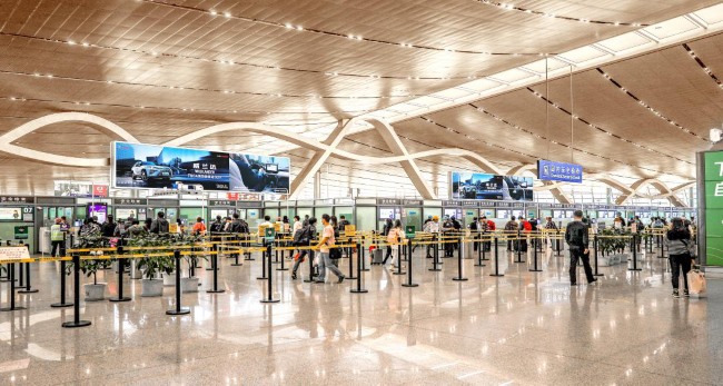 - 與航班信息同框出現:成都天府機場到達出口LED大屏廣告2026-03-05