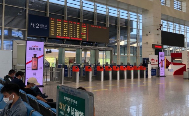 韶關站候車大廳檢票口:候車大廳的乘客通常會提前到達并在此等待較長時間,這為廣告提供了更長時間的曝光機會,相較于匆忙經過的通道廣告,乘客的注意力在此處停留時間更長。