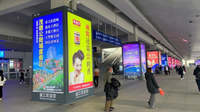 湛江西站進出站廣場戶外包柱燈箱廣告