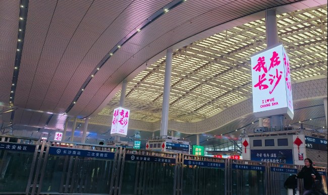 長沙南站候車大廳中央三面立柱LED大屏廣告