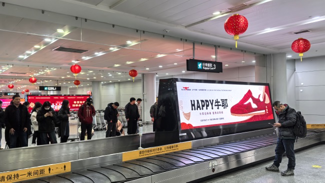 - 與航班信息同框出現:成都天府機場到達出口LED大屏廣告2026-03-05