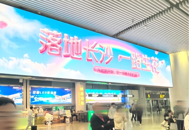 長沙黃花機場到達迎客廳LED廣告投放,長沙機場大屏廣告價格