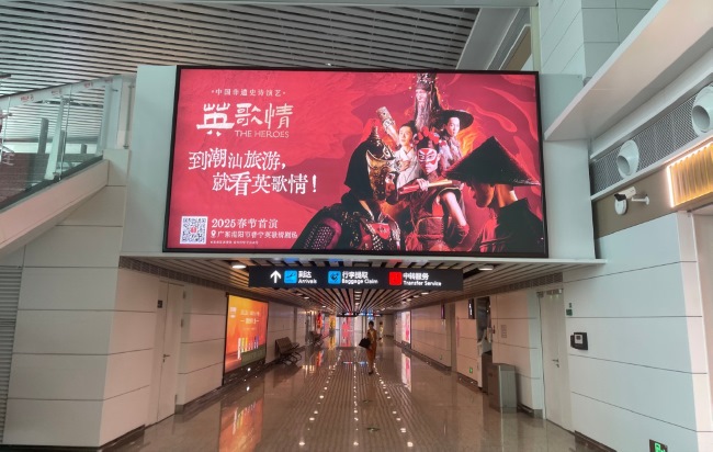 揭陽(yáng)潮汕機(jī)場(chǎng)T2候機(jī)廳前段左側(cè)墻面燈箱廣告