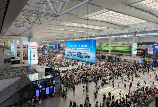 - 候車大廳幾何中心的品牌陣列:廣州白云站三角立柱燈箱廣告2026-02-25