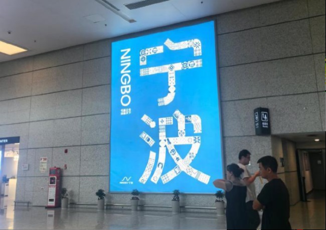 寧波機場打卡拍照最多的廣告位,寧波機場迎客廳墻面燈箱廣告