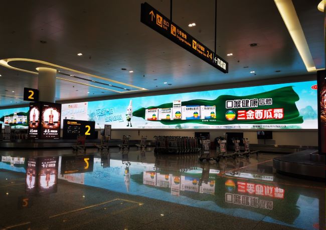 桂林機場一層國內到達行李提取轉盤上方墻面LED大屏廣告
