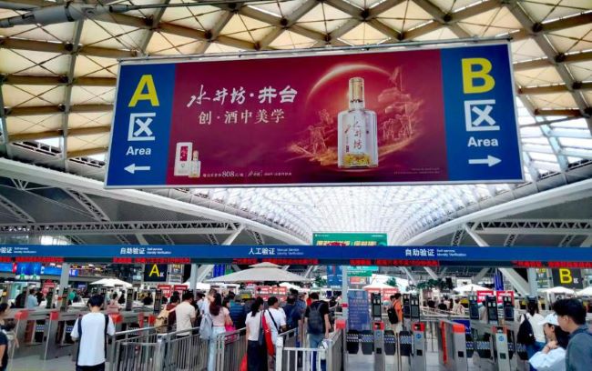 - 候車大廳幾何中心的品牌陣列:廣州白云站三角立柱燈箱廣告2026-02-25
