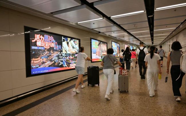 香港西九龍高鐵站通道墻面燈箱廣告位于海關查驗區與交通接駁區過渡帶,所有旅客必須減速通過;8塊燈箱沿通道線性布局,形成總長近24米的品牌展示墻。旅客行進中可持續接觸多塊畫面,實現重復曝光強化。燈箱安裝高度1.3-1.5米,閱讀距離僅0.8-2米,視覺沖擊力遠超高空媒體。靜態畫面持久展示,不受輪播時間限制,確保每位旅客接收完整信息。