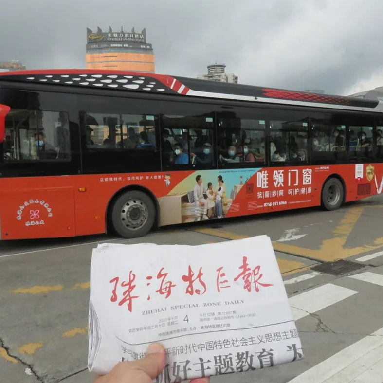 唯領門窗強勢上刊珠海公交車廣告