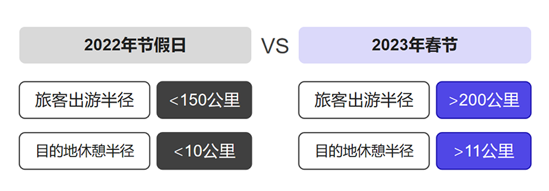 2023年五一假期:游客平均出游半徑180.82公里,同比增長81.59%;目的地平均游憩半徑15.98公里,同比增長167.16%。