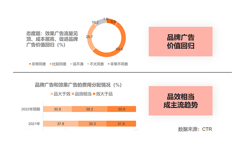 數(shù)字營銷時代,效果廣告可以幫企業(yè)直接實(shí)現(xiàn)用戶轉(zhuǎn)化 / 銷量提升,營銷效果更易衡量,因此長時間以來成為企業(yè)營銷工作的重點(diǎn),在營銷預(yù)算中份額越來越重。但一味專注效果,會陷入“短期主義陷阱”——短期銷量增長成功屏蔽了企業(yè)成長所需其他要素的價(jià)值(如產(chǎn)品力 / 組織力 / 品牌力等) 讓品牌忽略與消費(fèi)者的關(guān)系維系和情感連接,從而削弱品牌對消費(fèi)者的心智影響 導(dǎo)致消費(fèi)者信任感逐漸流失,給品牌資產(chǎn)帶來長期隱性傷害。
