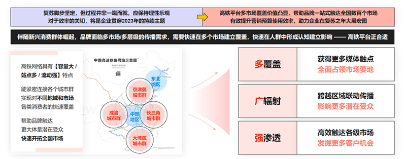 借助高鐵平臺,實(shí)現(xiàn)品牌對多目標(biāo)市場快速連接形成覆蓋,是企業(yè)實(shí)現(xiàn)效率優(yōu)先的明智之選。