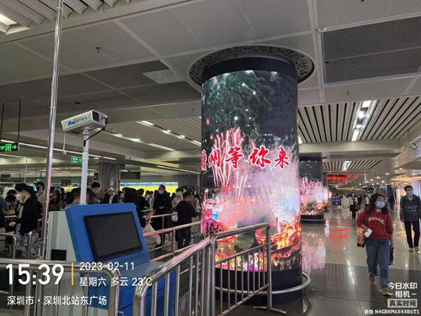 深圳北站換乘區包柱LED廣告價格,文旅政府深圳北高鐵站廣告案例