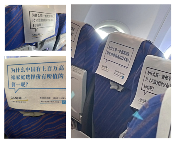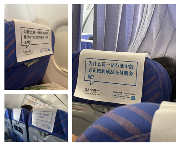 簡一的這次飛機頭枕巾廣告投放可謂是足夠精準且性價比超高,直接布局在高端出行旅客目光停留時間最長的飛機頭枕巾廣告上,飛行期間的斷網時刻,讓受眾放下手機,注意周邊環境,目光所及之處飛機頭枕巾廣告皆是來自簡一的提問。