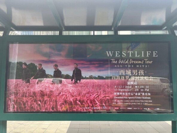 深圳公交候車亭廣告2周起做,支持短期亦可長期發布廣告,是演唱會、影視劇等文化活動宣傳的不二之選。以粉色麥田為背景的WESTLIFE西城男孩深圳巡回演唱會宣傳海報上刊深圳大街小巷的公交候車亭廣告。第一戶外小編通過此次演唱會廣告案例帶大家了解下深圳候車亭燈箱廣告。