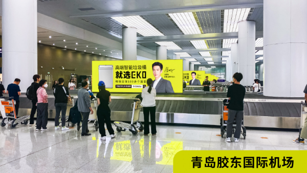 今天全仔給大家帶來了的是來自EKO億科智能垃圾桶青島膠東機場廣告案例,標志性黃綠色廣告底色配上簡潔卻吸睛的畫面設計,選擇青島機場到達行李提取LED大屏廣告聯播發布,效果震撼。