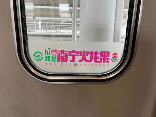 本次南寧火龍果高鐵專列的冠名,旨在借力高鐵媒體廣觸達(dá)、深覆蓋、強(qiáng)影響的優(yōu)勢(shì),以高品質(zhì)、優(yōu)產(chǎn)品為本,搭乘中國高鐵的高速度,加快地標(biāo)農(nóng)產(chǎn)品挺進(jìn)全國市場(chǎng)速度,提升品牌傳播的深度和廣度。印有“南寧火龍果 甜蜜你和我”字樣及南寧火龍仔標(biāo)志的高鐵冠名列車格外顯眼。車廂內(nèi)部,南寧火龍果元素被充分融入,車廂走廊、行李架、小桌板等位置多角度、全方位展示南寧火龍果品牌。