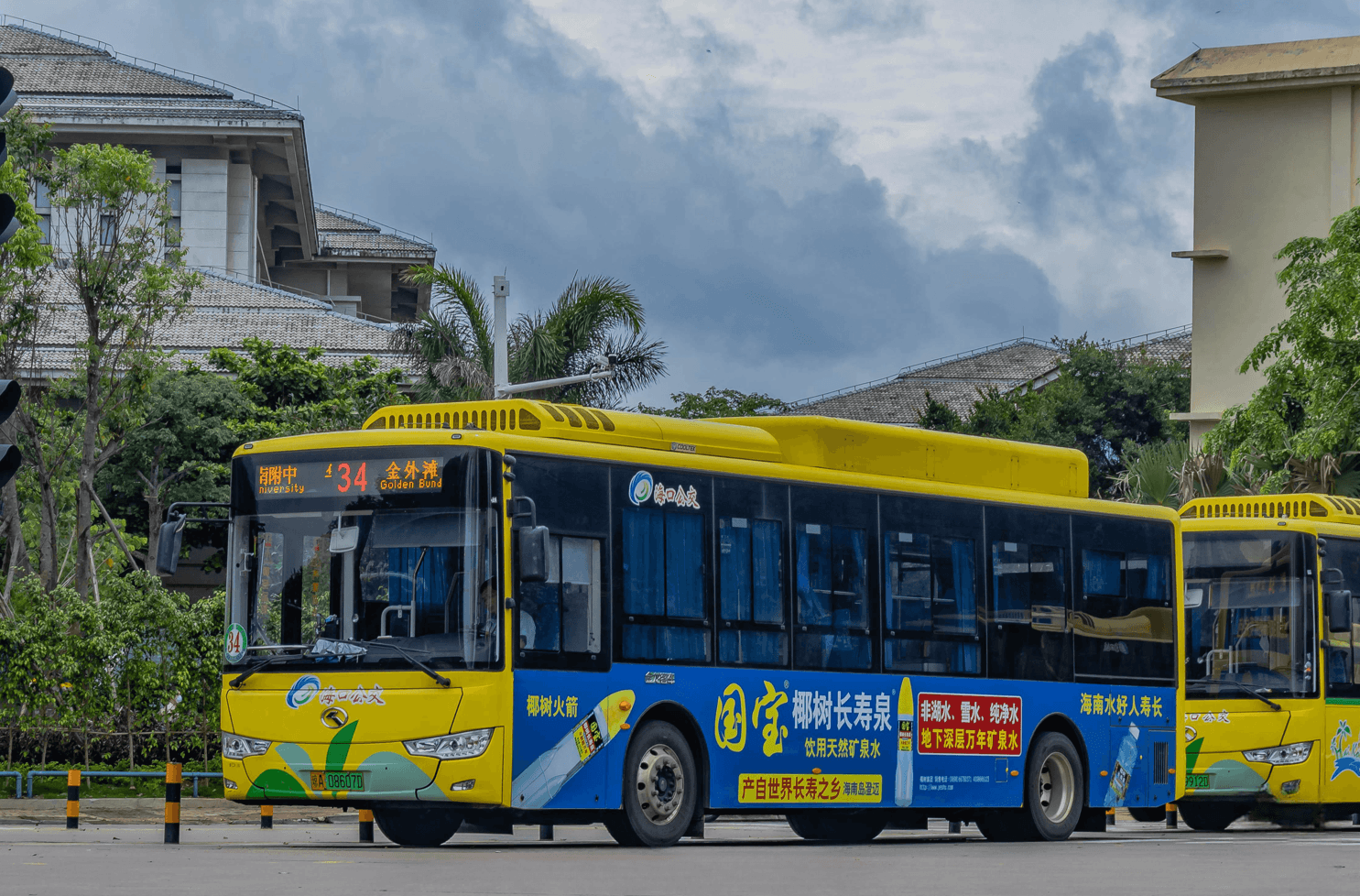 今天第一戶外小編帶來的海口公交車身廣告案例來自椰樹礦泉水,所選線路是覆蓋美蘭區沿海海秀商圈、解放西商圈、國貿商圈等重點商圈,以及國興大道、海秀東路、青年路、和平南路等主干道的AAA級34路公交車。明黃的車身底色+大片藍色廣告背景色形成強烈的視覺沖擊,配上椰樹集團一貫以來簡單直接的排版風格,成為海口馬路上不能忽視的存在,讓來自海南的本土品牌在海口公交車身這張大型‘城市名片’走入市民和游客眼中。