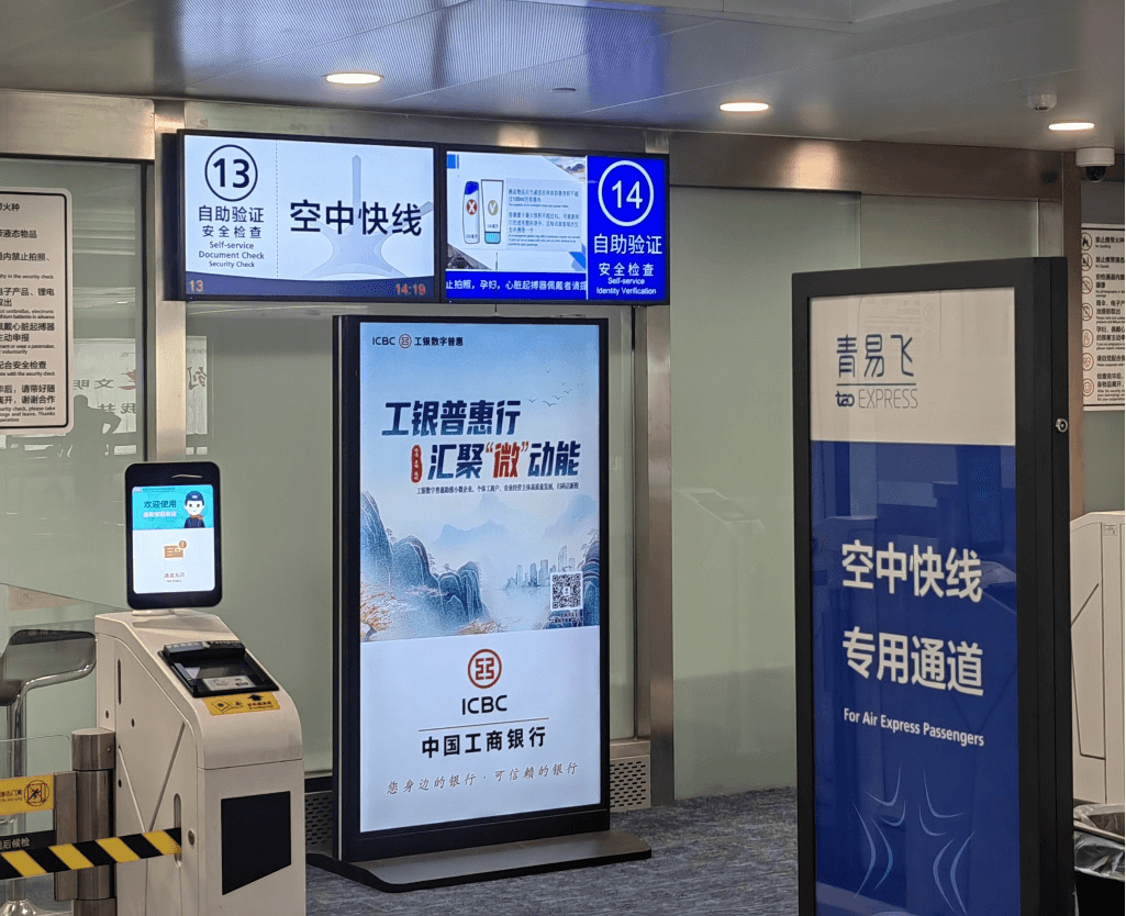 青島膠東3F國內出發安檢口刷屏機廣告