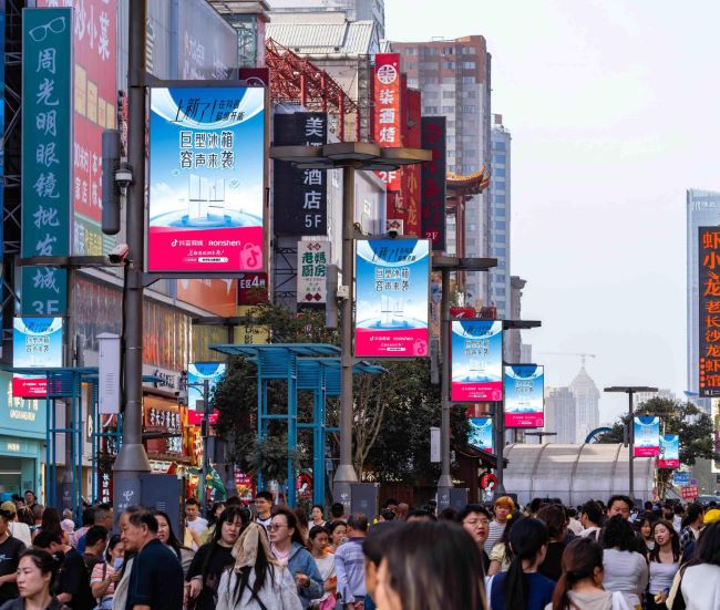 長沙黃興路商業(yè)步行街智慧街區(qū)聯(lián)排路燈桿LED廣告
